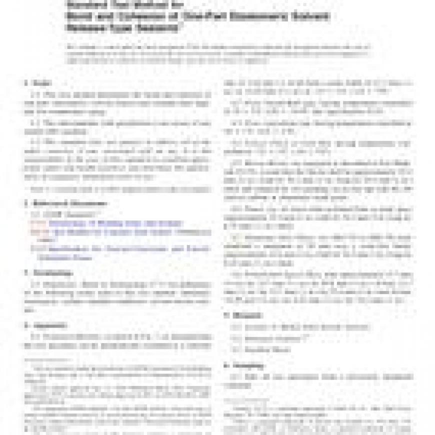 1.1This test method determines the bond and cohesion of one-part, elastomeric, solvent release-type sealants after high- and low-temperature aging.