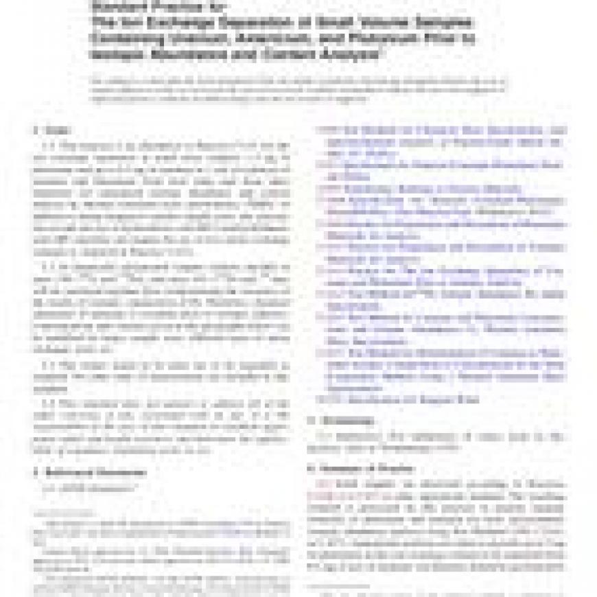 ASTM C1816-16 Standard Practice for The Ion Exchange Separation of Small Volume Samples Containing Uranium, Americium, and Plutonium Prior to Isotopic Abundance and Content Analysis