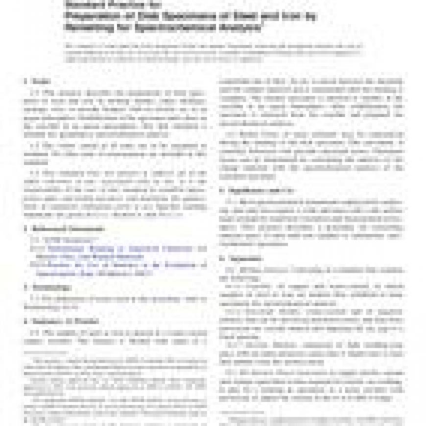 ASTM E1010-16 Standard Practice for Preparation of Disk Specimens of Steel and Iron by Remelting for Spectrochemical Analysis