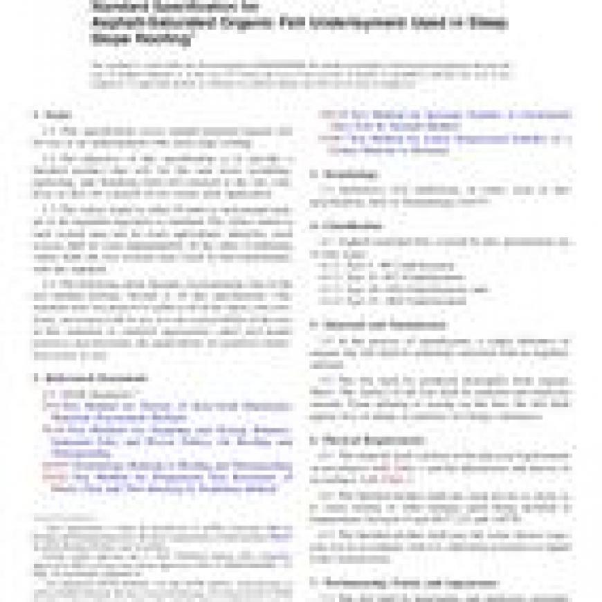 ASTM D4869/D4869M-16 Standard Specification for Asphalt-Saturated Organic Felt Underlayment Used in Steep Slope Roofing