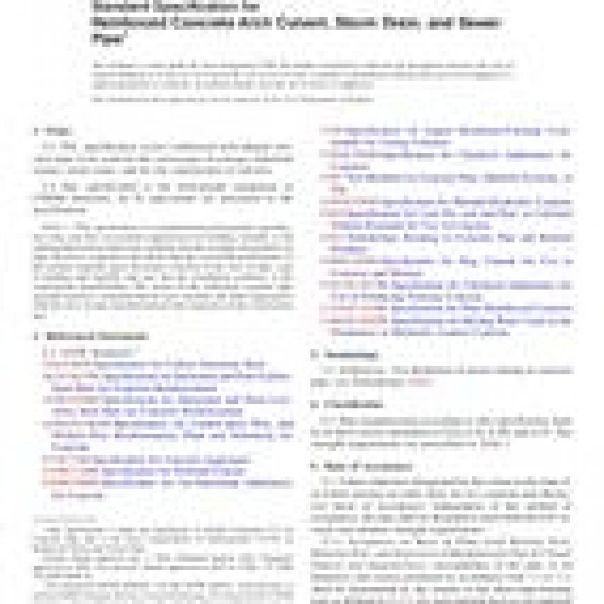 ASTM C506-16 Standard Specification for Reinforced Concrete Arch Culvert, Storm Drain, and Sewer Pipe