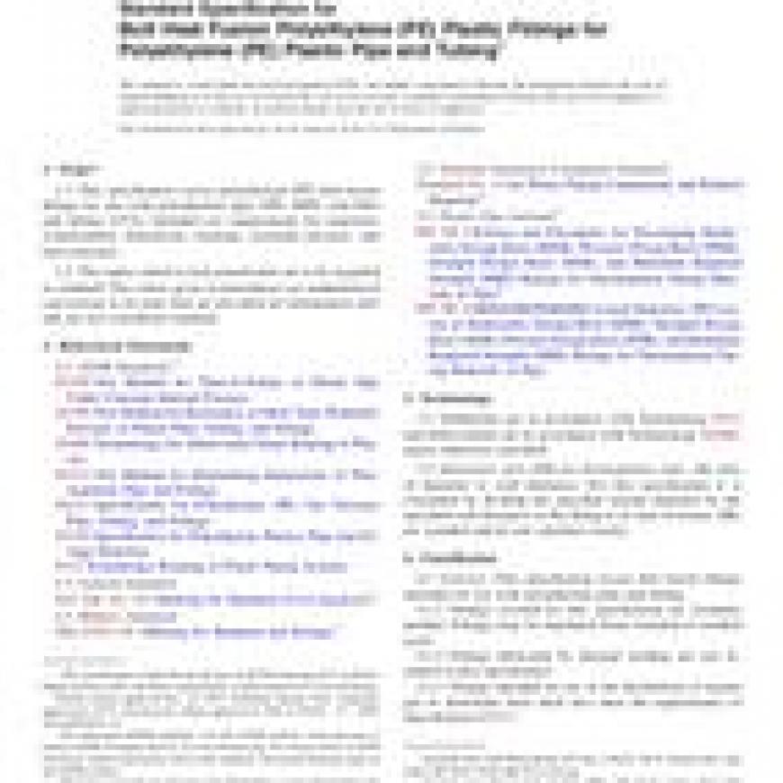 ASTM D3261-15 Standard Specification for Butt Heat Fusion Polyethylene (PE) Plastic Fittings for Polyethylene (PE) Plastic Pipe and Tubing