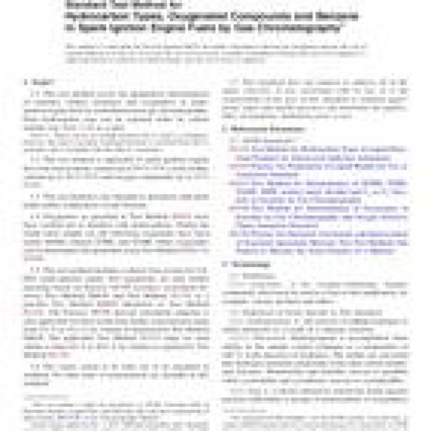 ASTM D6839-15 Standard Test Method for Hydrocarbon Types, Oxygenated Compounds and Benzene in Spark Ignition Engine Fuels by Gas Chromatography