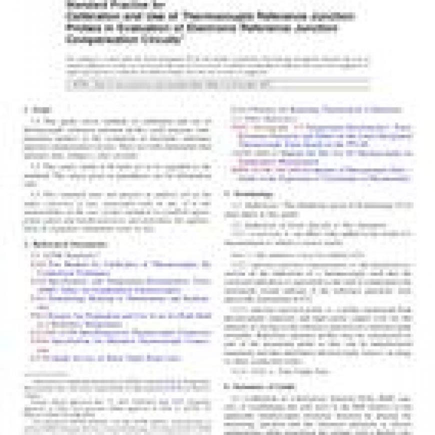 1.1This guide covers methods of calibration and use of thermocouple reference junction probes (cold junction compensation probes) in the evaluation of electronic reference junction compensation circuits. Their use with instruments that measure only voltage is also covered.