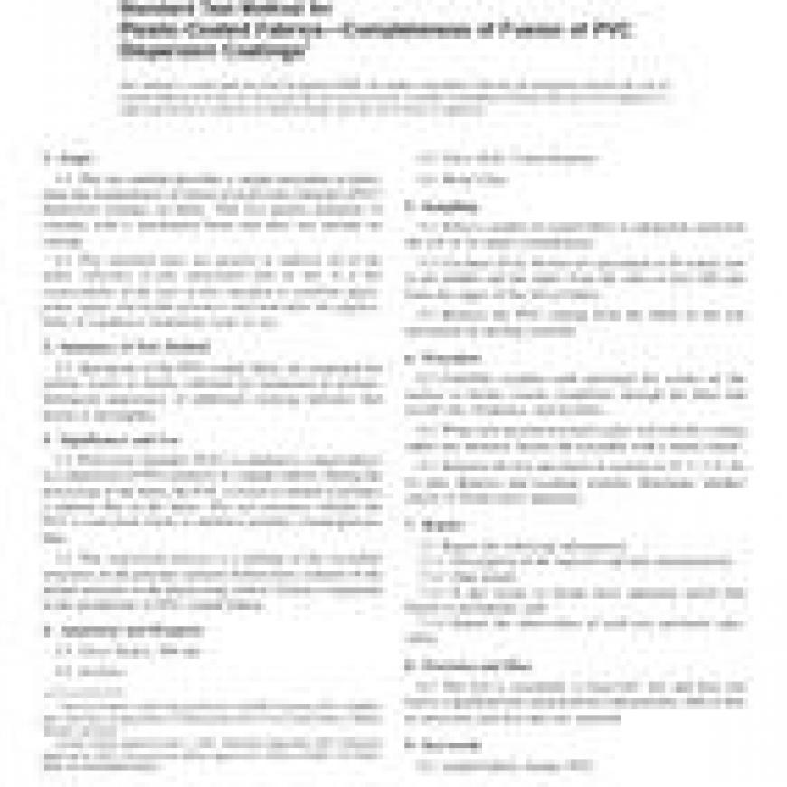 ASTM D4005-92(2015) Standard Test Method for Plastic-Coated Fabrics-Completeness of Fusion of PVC Dispersion Coatings