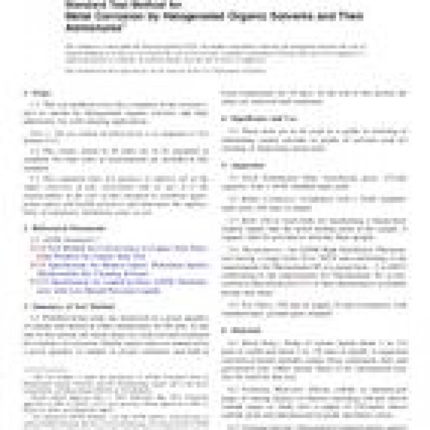 1.1This test method covers the evaluation of the corrosiveness to metals by halogenated organic solvents and their admixtures for cold cleaning applications.
