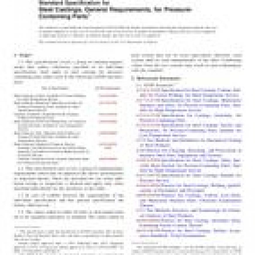 1.1This specification2 covers a group of common requirements that, unless otherwise specified in an individual specification, shall apply to steel castings for pressure-containing parts under each of the following ASTM specifications: