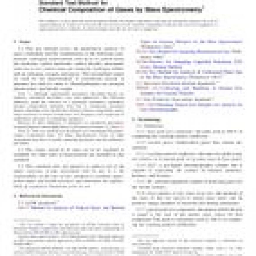 ASTM D2650-10(2015) Standard Test Method for Chemical Composition of Gases by Mass Spectrometry