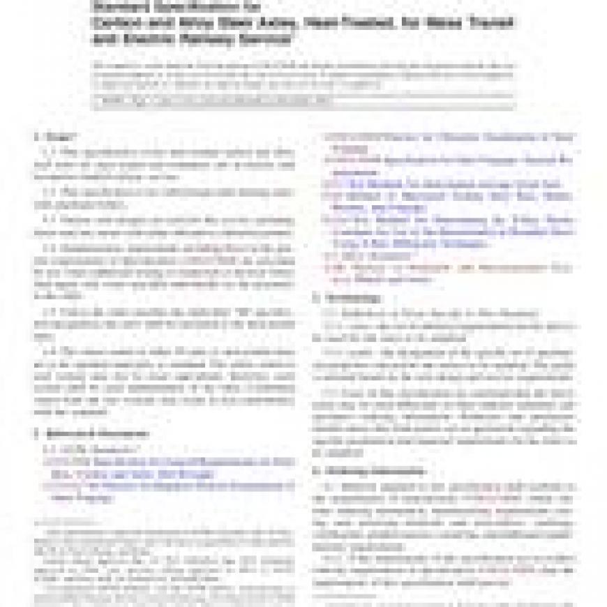 1.1This specification covers heat-treated carbon and alloy steel axles for mass transit and commuter cars in electric and locomotive hauled railway service.