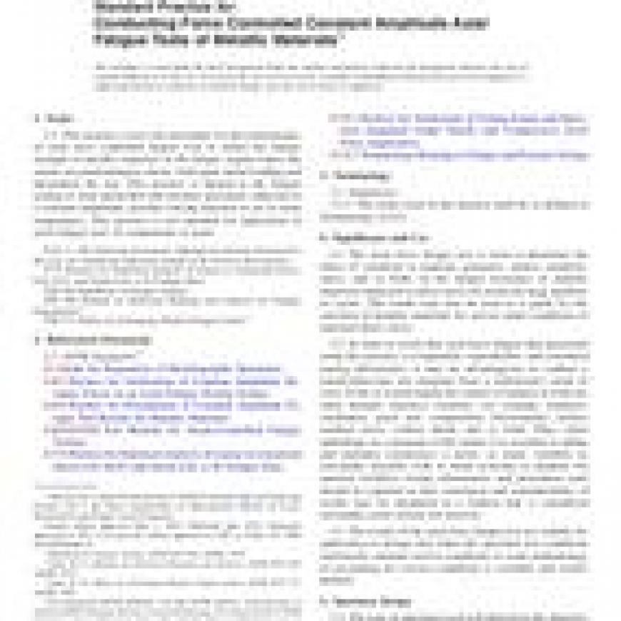 ASTM E466-15 Standard Practice for Conducting Force Controlled Constant Amplitude Axial Fatigue Tests of Metallic Materials