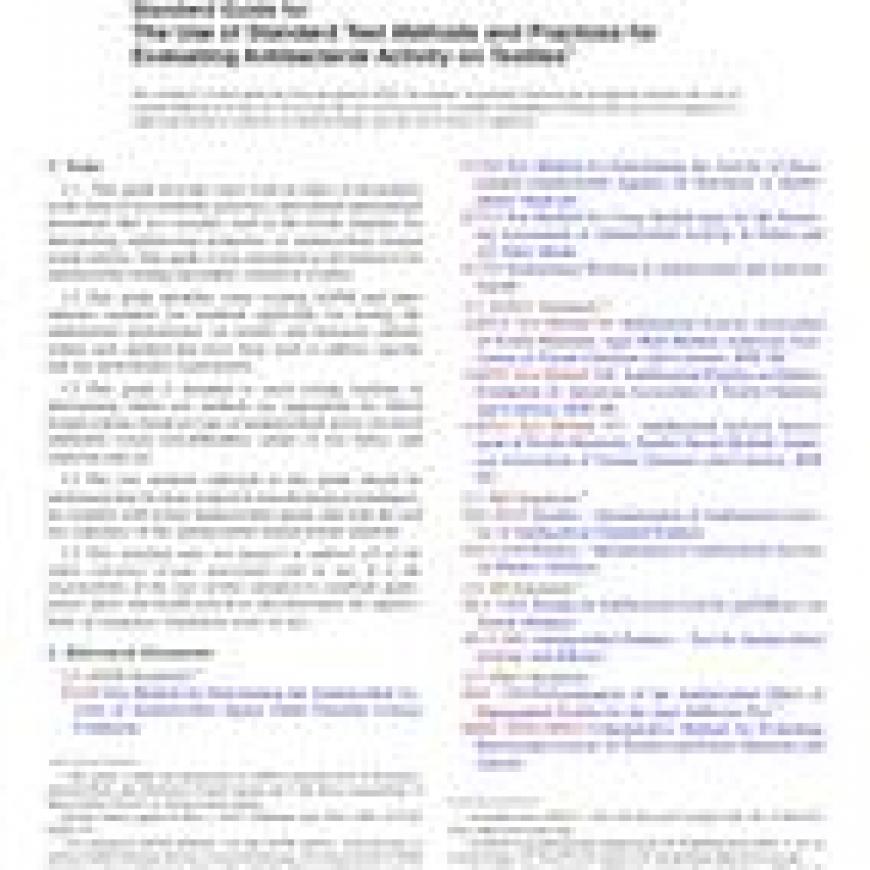 ASTM E2922-15 Standard Guide for The Use of Standard Test Methods and Practices for Evaluating Antibacterial Activity on Textiles