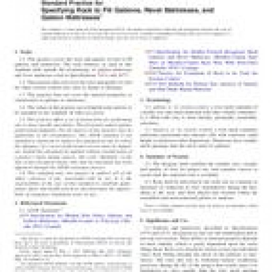 ASTM D6711-15 Standard Practice for Specifying Rock to Fill Gabions, Revet Mattresses, and Gabion Mattresses