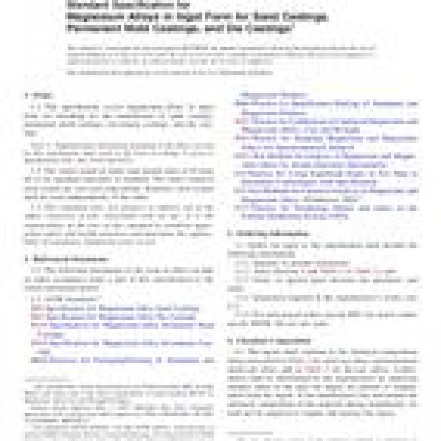 1.1This specification covers magnesium alloys in ingot form for remelting for the manufacture of sand castings, permanent mold castings, investment castings, and die castings.