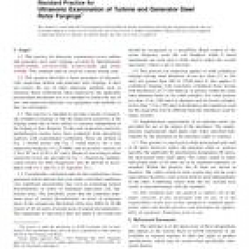 1.2This practice describes a basic procedure of ultrasonically inspecting turbine and generator rotor forgings. It does not restrict the use of other ultrasonic methods such as reference block calibrations when required by the applicable procurement documents nor is it intended to restrict the use of new and improved ultrasonic test equipment and methods as they are developed.