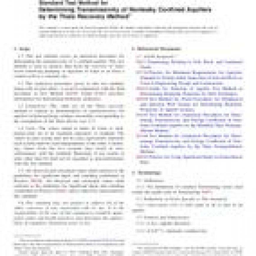 Standard Test Method for Determining Transmissivity of Nonleaky Confined Aquifers by the Theis Recovery Methodstandard by ASTM International, 04/15/2015
