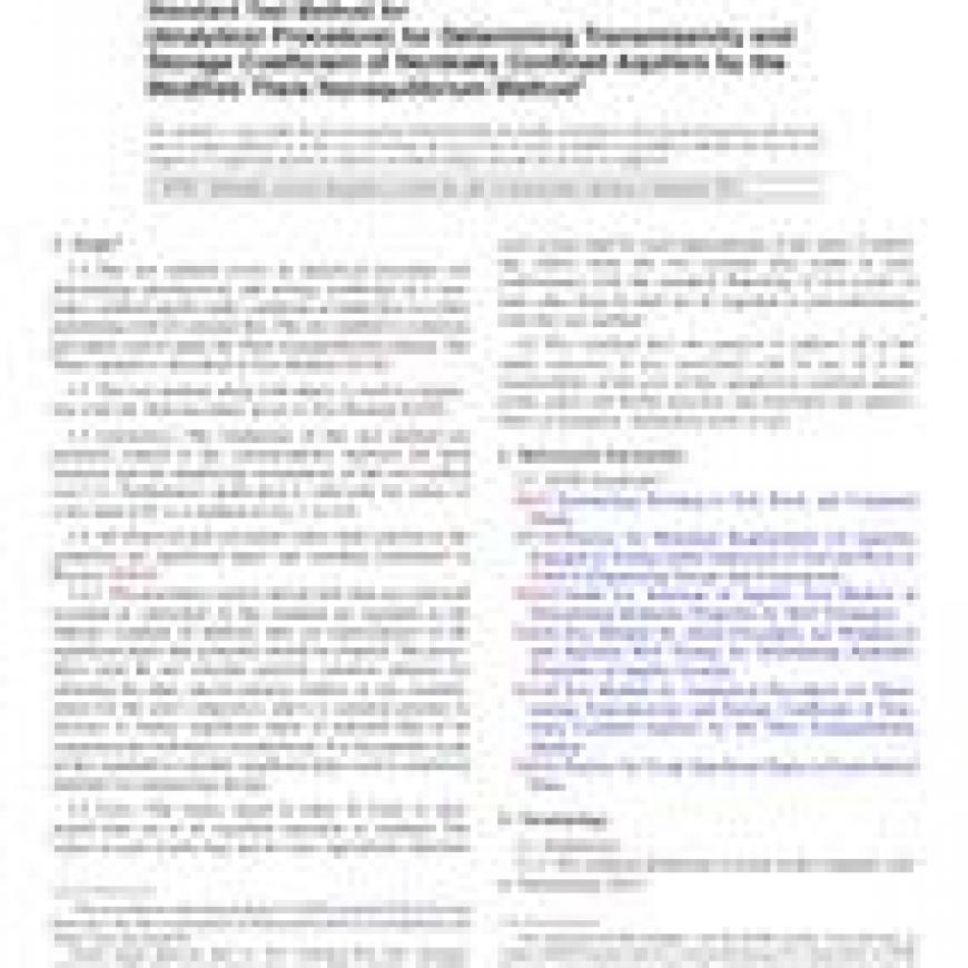 Standard Test Method for (Analytical Procedure) for Determining Transmissivity and Storage Coefficient of Nonleaky Confined Aquifers by the Modified Theis Nonequilibrium Methodstandard by ASTM International, 04/15/2015
