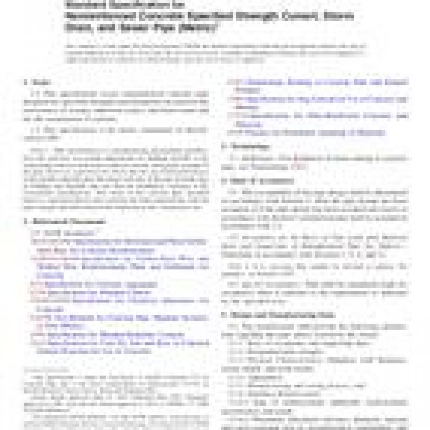 Standard Specification for Nonreinforced Concrete Specified Strength Culvert, Storm Drain, and Sewer Pipe (Metric)standard by ASTM International, 04/15/2015