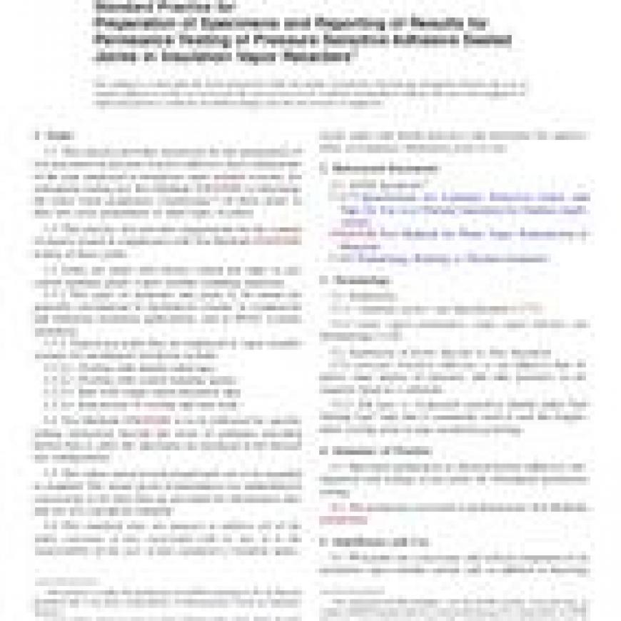 Standard Practice for Preparation of Specimens and Reporting of Results for Permeance Testing of Pressure Sensitive Adhesive Sealed Joints in Insulation Vapor Retardersstandard by ASTM International, 04/15/2015