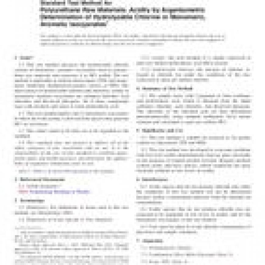 Standard Test Method for Polyurethane Raw Materials: Acidity by Argentometric Determination of Hydrolyzable Chlorine in Monomeric, Aromatic Isocyanatesstandard by ASTM International, 04/01/2015