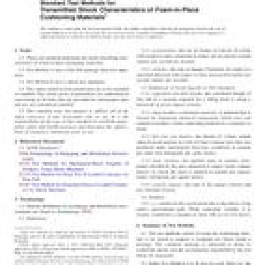 Standard Test Methods for Transmitted Shock Characteristics of Foam-in-Place Cushioning Materialsstandard by ASTM International, 04/01/2015