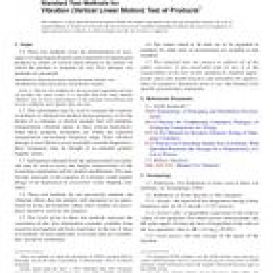 Standard Test Methods for Vibration (Vertical Linear Motion) Test of Productsstandard by ASTM International, 04/01/2015