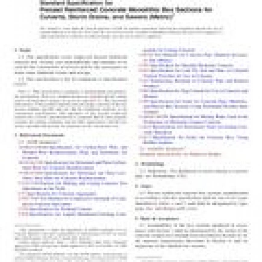 Standard Specification for Precast Reinforced Concrete Monolithic Box Sections for Culverts, Storm Drains, and Sewers (Metric)standard by ASTM International, 04/01/2015