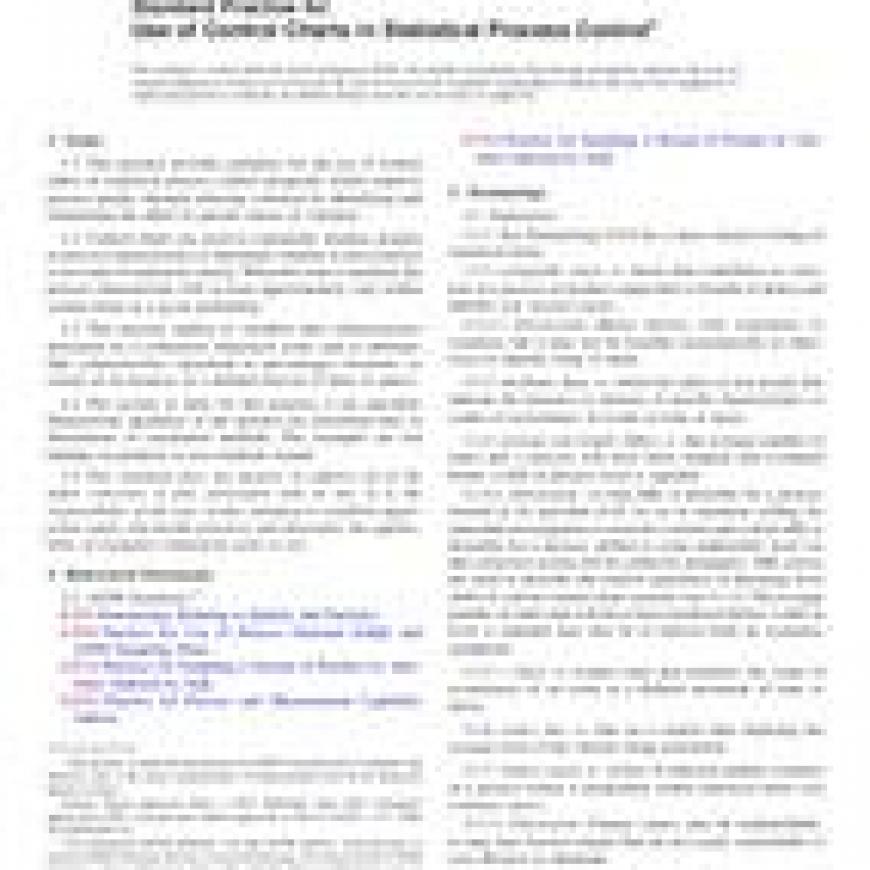 Standard Practice for Use of Control Charts in Statistical Process Controlstandard by ASTM International, 04/01/2015
