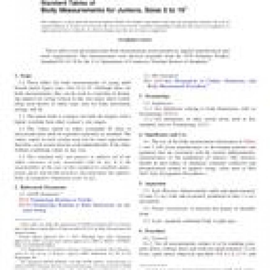 Standard Tables of Body Measurements for Juniors, Sizes 0 to 19standard by ASTM International, 02/01/2015