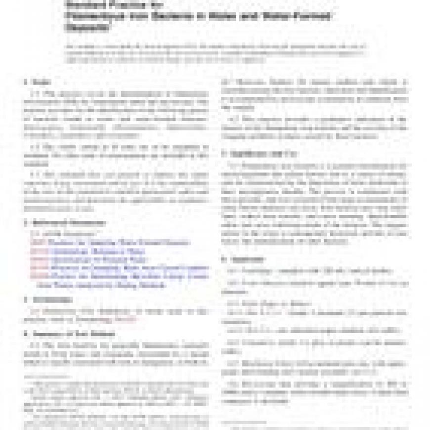 Standard Practice for Filamentous Iron Bacteria in Water and Water-Formed Depositsstandard by ASTM International, 02/01/2015