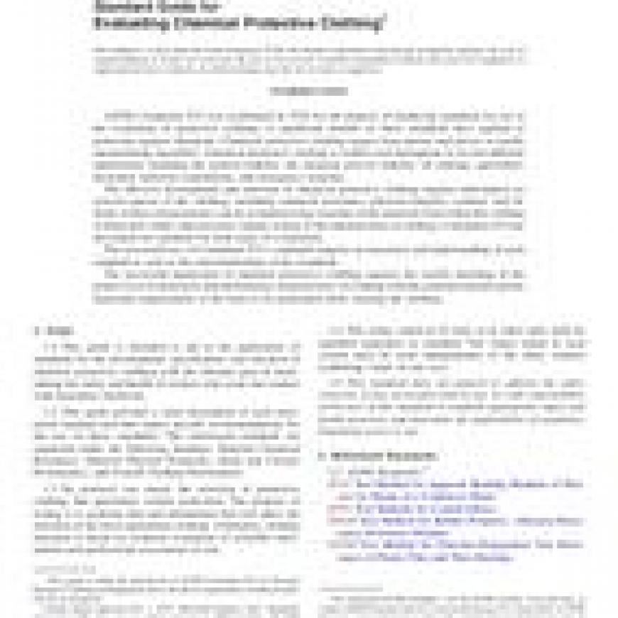 Standard Guide for Evaluating Chemical Protective Clothingstandard by ASTM International, 02/01/2015