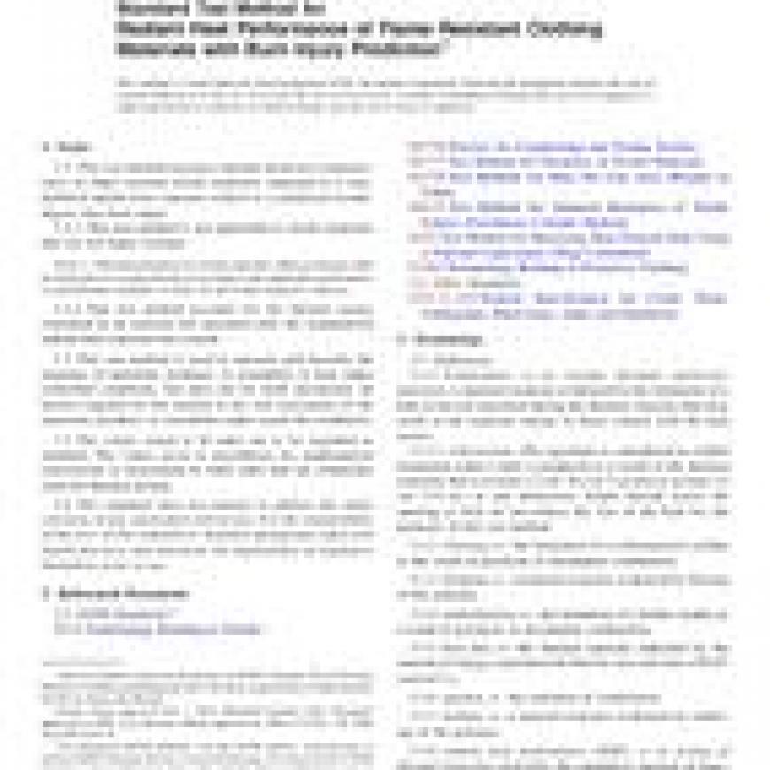 Standard Test Method for Radiant Heat Performance of Flame Resistant Clothing Materials with Burn Injury Prediction (Withdrawn 2020)standard by ASTM International, 02/01/2015