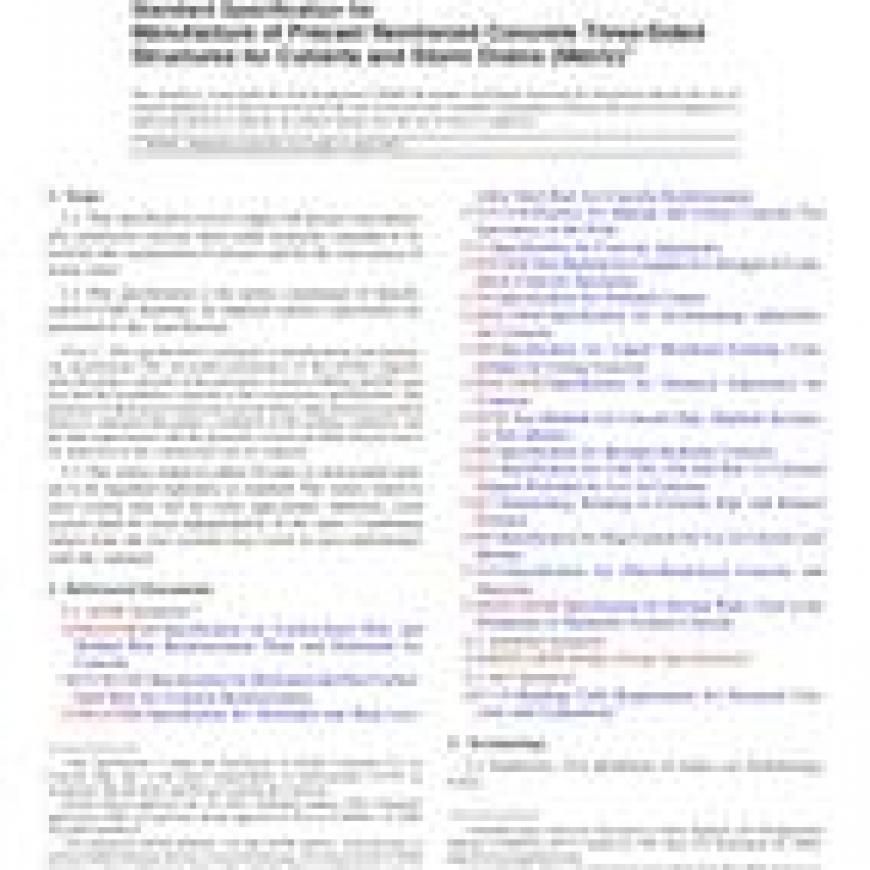 1.1This specification covers single-cell precast conventionally reinforced concrete three-sided structures intended to be used for the construction of culverts and for the conveyance of storm water.
