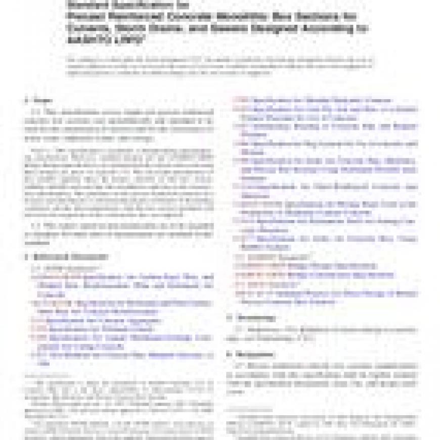Standard Specification for Precast Reinforced Concrete Monolithic Box Sections for Culverts, Storm Drains, and Sewers Designed According to AASHTO LRFDstandard by ASTM International, 01/15/2015
