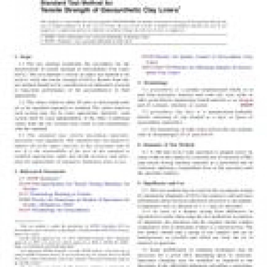 1.1The test method establishes the procedures for the measurement of tensile strength of Geosynthetic Clay Liner (GCL). This test method is strictly an index test method to be used to verify the tensile strength of GCLs. Results from this test method should not be considered as an indication of actual or long-term performance of the geosynthetic(s) in field applications.