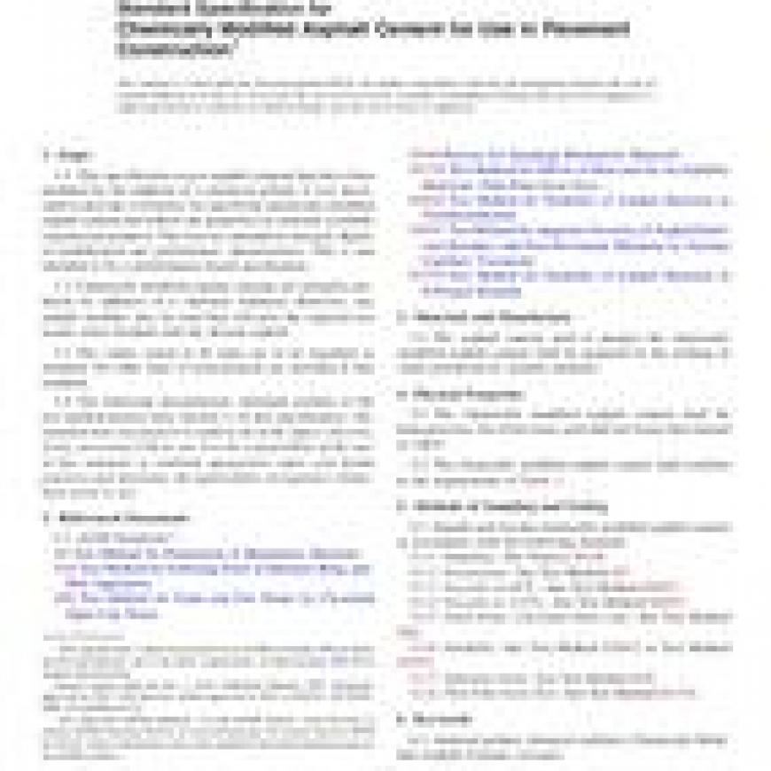 Standard Specification for Chemically Modified Asphalt Cement for Use in Pavement Constructionstandard by ASTM International, 01/01/2015