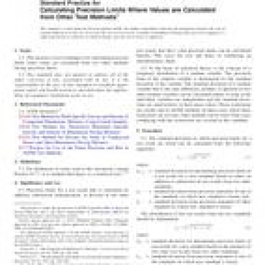 Standard Practice for Calculating Precision Limits Where Values are Calculated from Other Test Methodsstandard by ASTM International, 01/01/2015