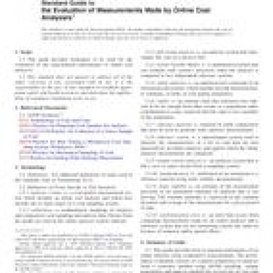 1.1This guide provides techniques to be used for the evaluation of the measurement performance of online coal analyzers.