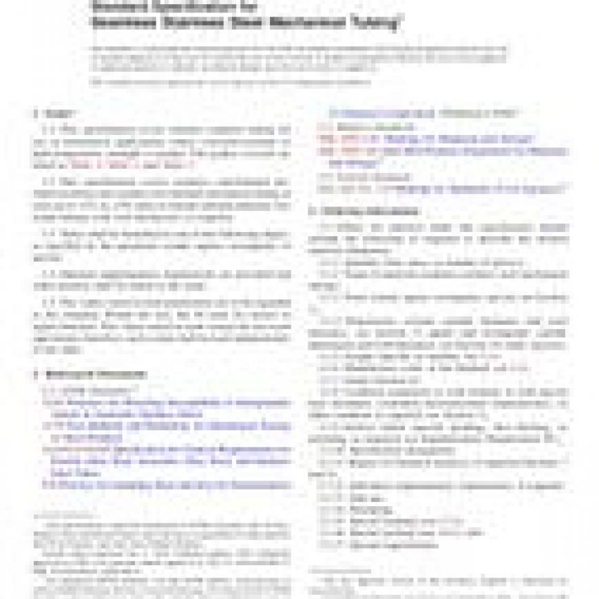 1.1This specification covers seamless stainless tubing for use in mechanical applications where corrosion-resistant or high-temperature strength is needed. The grades covered are listed in Table 1, Table 2, and Table 3.