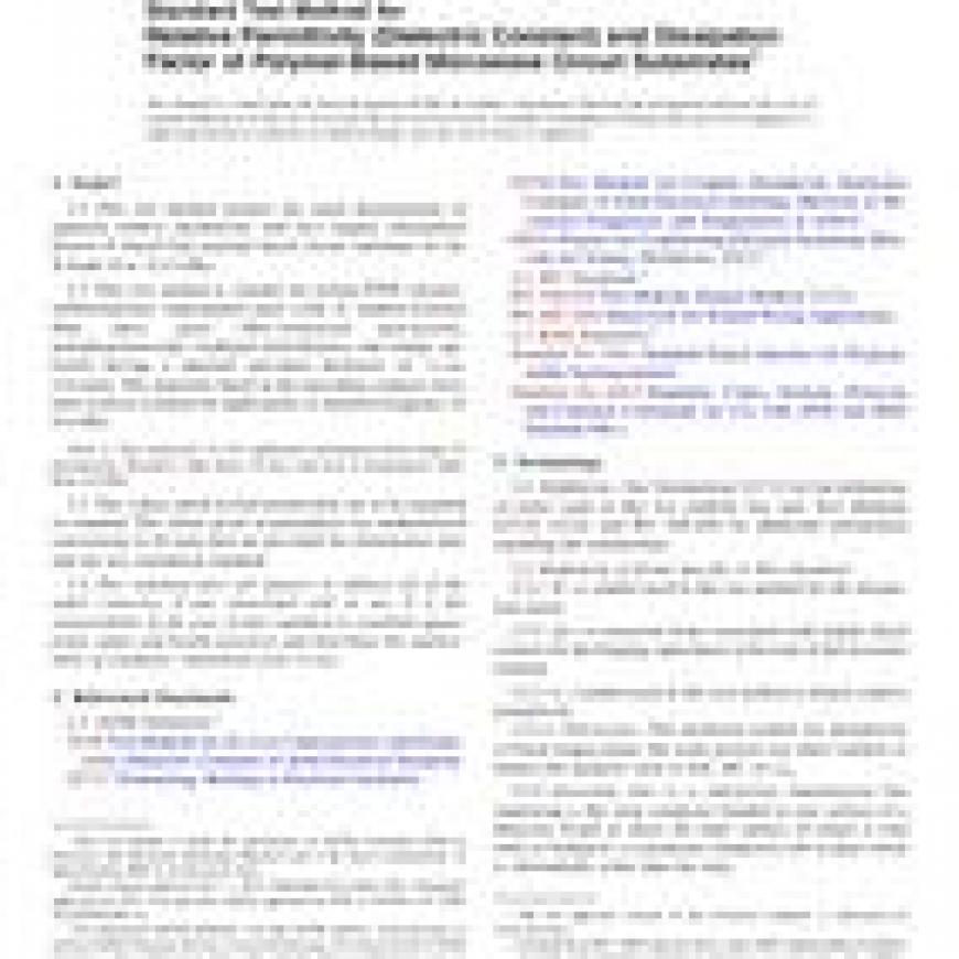 ASTM D3380-14 Standard Test Method for Relative Permittivity (Dielectric Constant) and Dissipation Factor of Polymer-Based Microwave Circuit Substrates