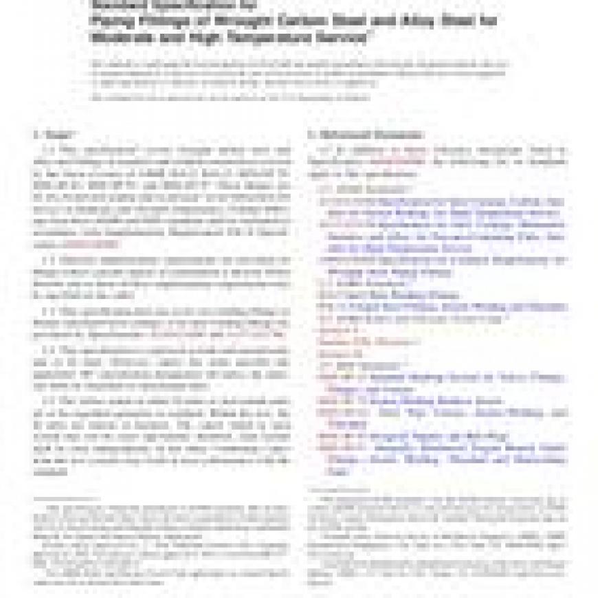 1.3This specification does not cover cast welding fittings or fittings machined from castings. Cast steel welding fittings are governed by Specifications A216/A216M and A217/A217M.