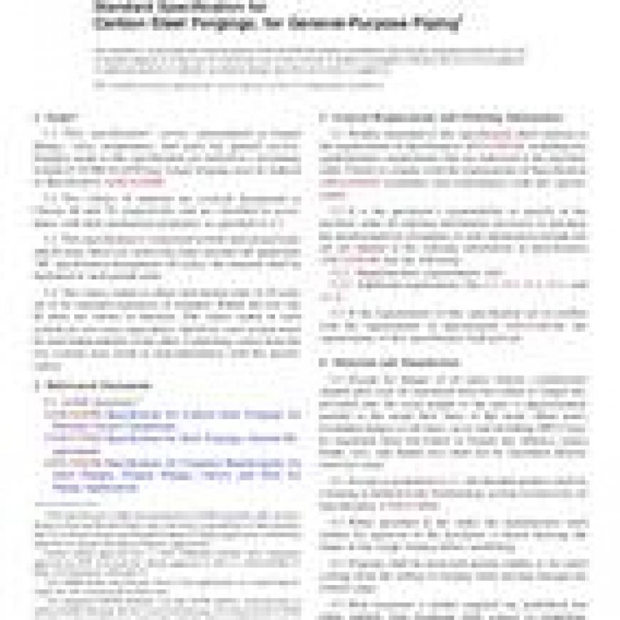 1.1This specification2 covers nonstandard as-forged fittings, valve components, and parts for general service. Forgings made to this specification are limited to a maximum weight of 10 000 lb [4540 kg]. Larger forgings may be ordered to Specification A266/A266M.
