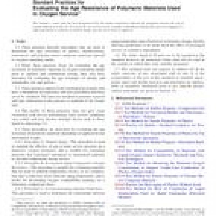 ASTM G114-14 Standard Practices for Evaluating the Age Resistance of Polymeric Materials Used in Oxygen Service