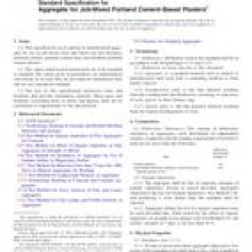 1.1This specification covers natural or manufactured aggregate for use in job-mixed base and finish-coat full thickness portland cement, portland cement-lime and modified portland cement plasters.