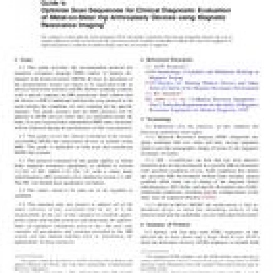 ASTM F2978-13 Guide to Optimize Scan Sequences for Clinical Diagnostic Evaluation of Metal-on-Metal Hip Arthroplasty Devices using Magnetic Resonance Imaging