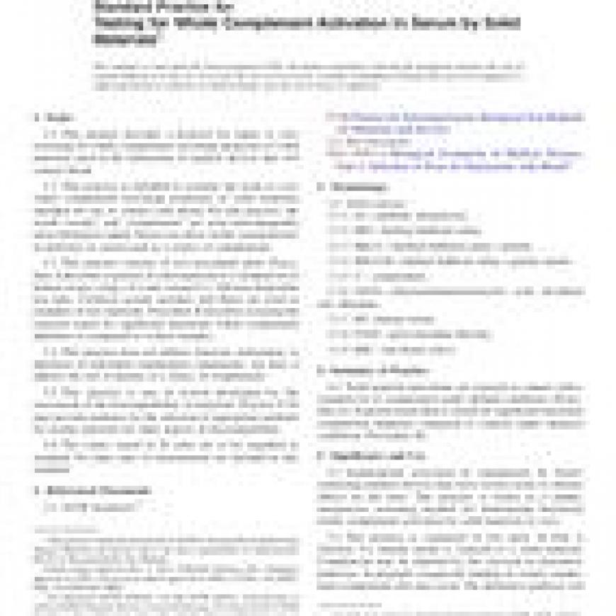 ASTM F1984-99(2013) Standard Practice for Testing for Whole Complement Activation in Serum by Solid Materials