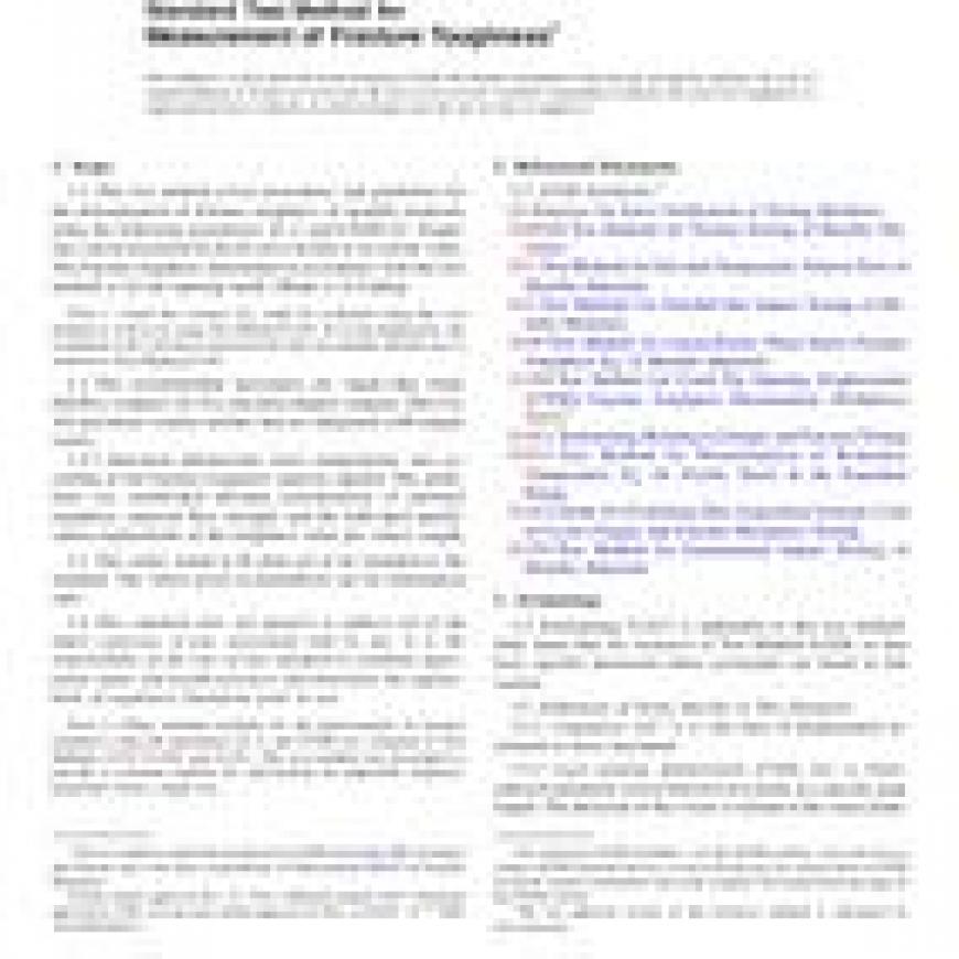 Note 2-Other standard methods for the determination of fracture toughness using the parameters K, J, and CTOD are contained in Test Methods E399, E1290, and E1921. This test method was developed to provide a common method for determining all applicable toughness parameters from a single test.No products