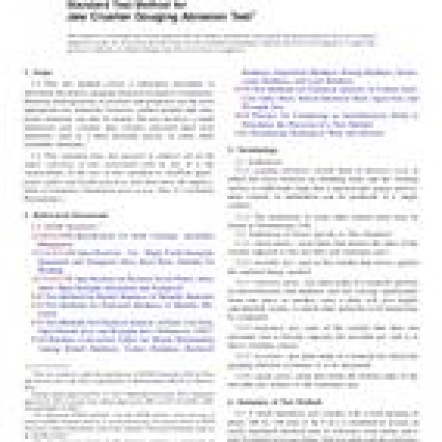 1.1This test method covers a laboratory procedure to determine the relative gouging abrasion resistance of materials. Materials homogeneous in structure and properties are the most appropriate test materials; however, surface-treated and composite materials can also be tested. The test involves a small laboratory jaw crusher that crushes presized hard rock materials, such as a hard morainal gravel, or some other crushable substance.