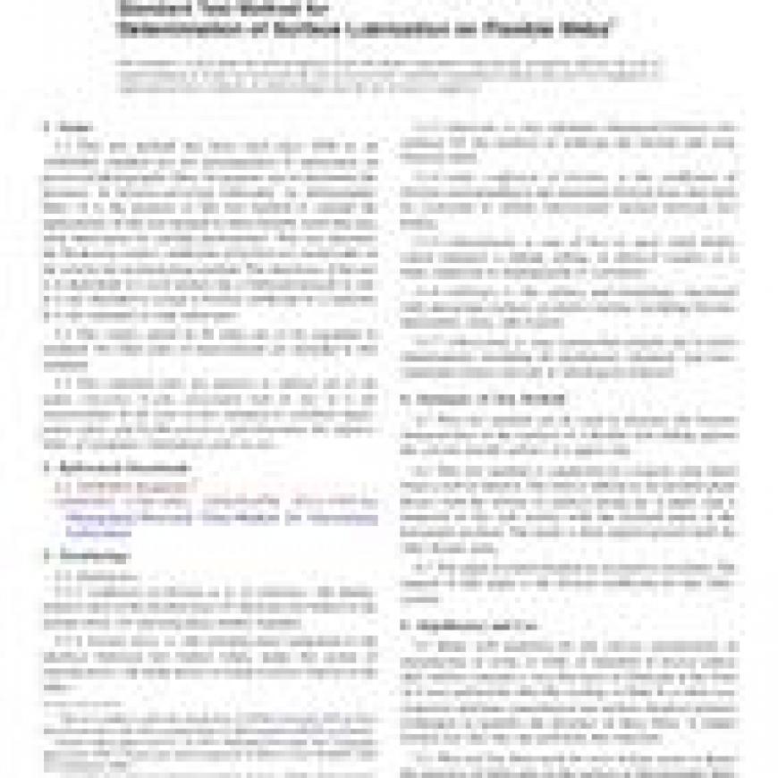 ASTM G164-99(2013) Standard Test Method for Determination of Surface Lubrication on Flexible Webs