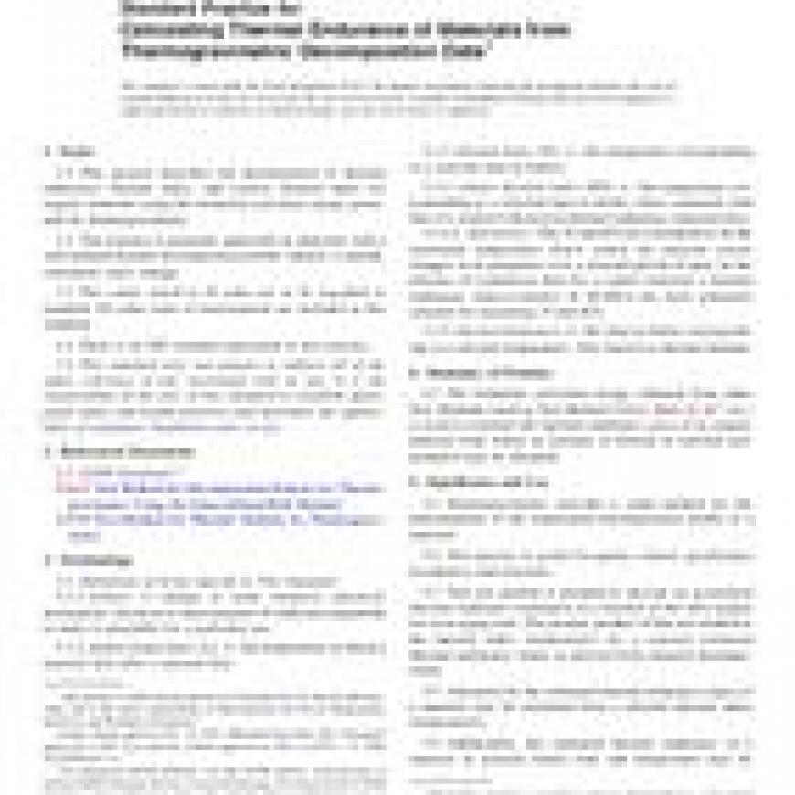 ASTM E1877-13 Standard Practice for Calculating Thermal Endurance of Materials from Thermogravimetric Decomposition Data