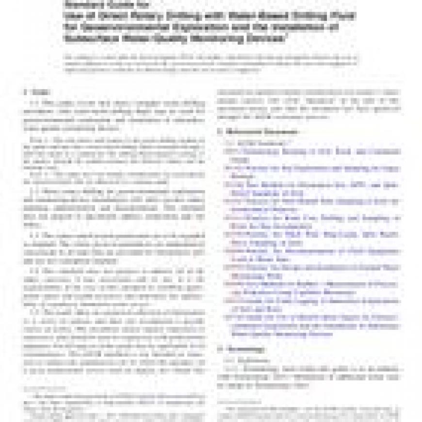 This guide covers how direct (straight) rotary-drilling procedures with water-based drilling fluids may be used for geoenvironmental exploration and installation of subsurface water-quality monitoring devices.